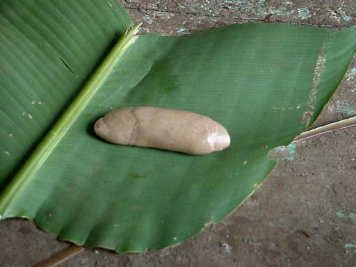 tree sap sitting on a banana leaf, ready for use in coating pottery. The