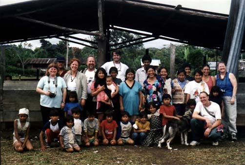 The potters and children of Nueva Vida with Estela Dagua, her daughter Miriam, and the visiting group from San Diego State University.