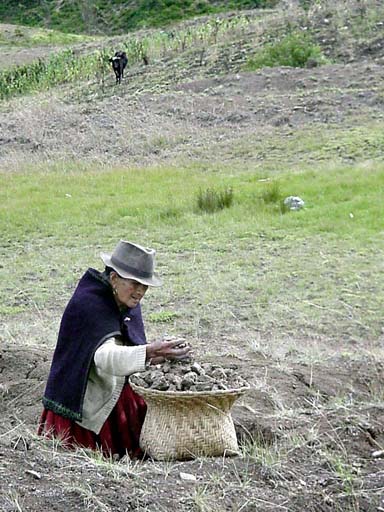 The clay is dumped into a large handmade basket for transporting it to the potter's house for drying.
