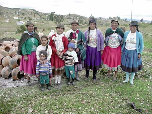 Josephina (left) and her four potter daughters, with a few other children from their extended family. All of the women work together to make and fire pottery. The village of Jatumpamba is in the background.
