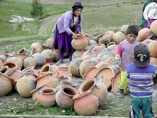 In the morning, the pottery is unstacked and sorted. Each of the potters can tell their own ware by distinctive features such as the rims and slip application.