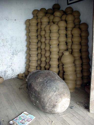 dry day is needed for firing. The large fired pot in the foreground is