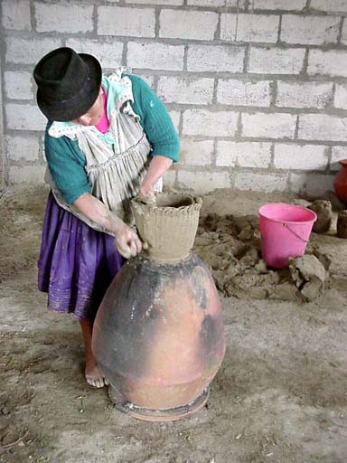 As the new pot gets thinner, the potter starts forming the rim. She keeps the form symmetrical by walking around and around the form, using the same repetitive movements of her strong hands to shape the clay evenly.