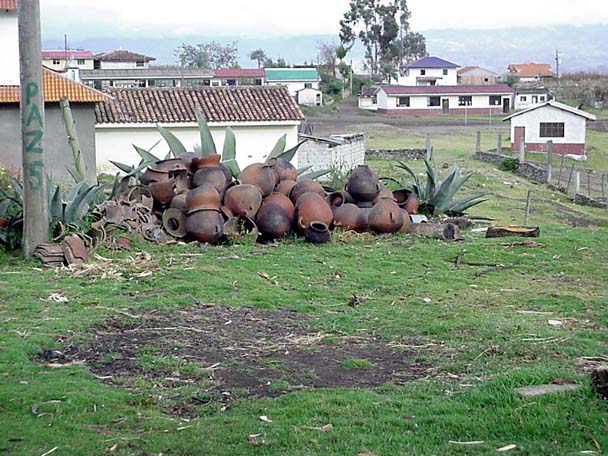 Pottery and shards of pots are everywhere in Jatumpamba. These old pots are probably used for firing new wares. The bare spot on the ground is a firing spot which hasn't seen recent use.