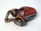 | Click on any image for a larger version. Kichwa pottery from Estela Dagua in Puyo: This is a large olla from Estela: From Jatun Molino, including a horn: Kichwa wooden paddle (bat) for making pottery (held in the lap while forming a pot): Unknown origin (from a shop in Puyo): |